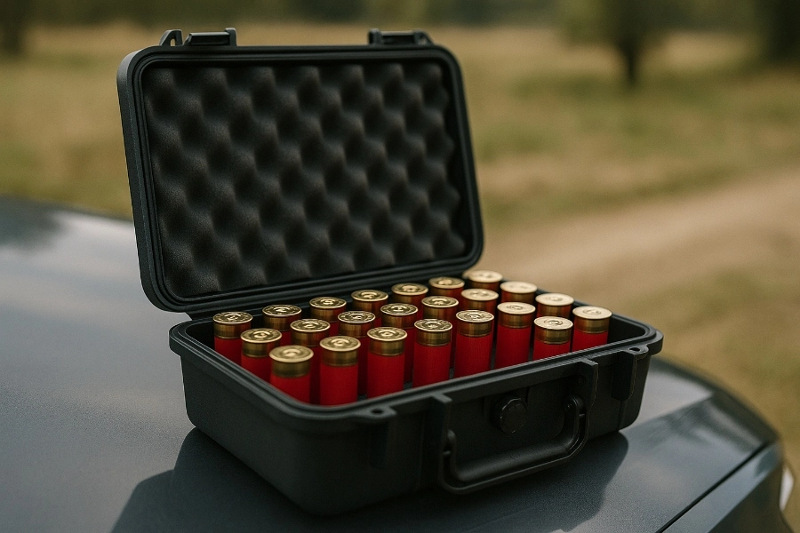 La munición debe transportarse por separado del arma. Lo ideal es llevarla en un compartimento distinto del coche, preferiblemente en el maletero. Aunque la ley no exige una caja fuerte, sí se recomienda un recipiente cerrado y resistente para mayor seguridad.
