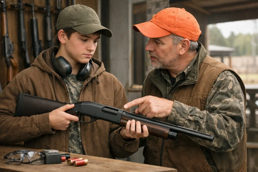 Una escopeta ligera, de encare fácil y calibre manejable (como 20 o 16) suele ser ideal para principiantes.